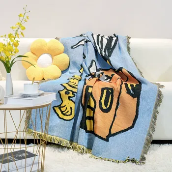 Toptan Modern Polyester pamuk dokuma atmak battaniye goblen dekoratif kanepe battaniyesi açık halı